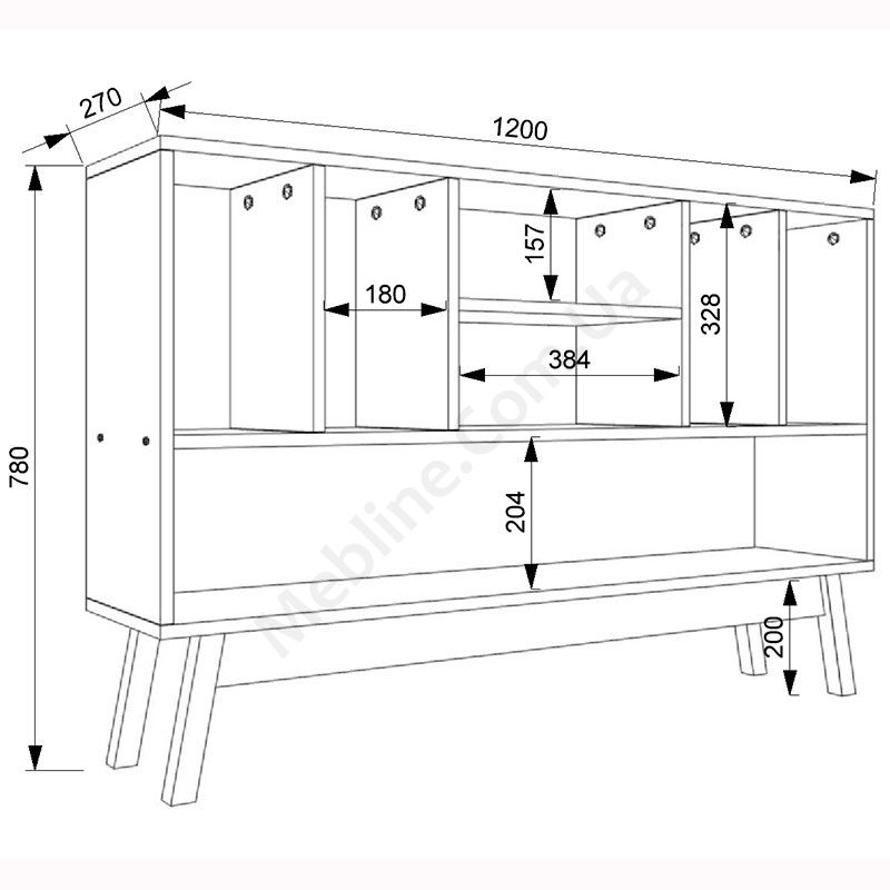 Сталаж на ніжках з відкритими полицями.