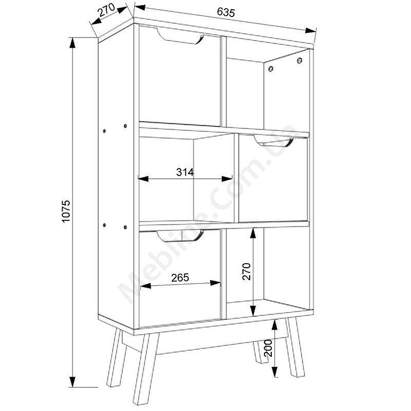 Виконаний з ламінованої ДСП Swiss Krono, завтовшки 16 мм.Екологічна безпека класу Е-1.Ніжки — натуральне дерево.Кромка — протиударна ПВХ, завтовшки 0,5 мм.Три відкриті секції та три закриті.Замість ручок вирізи у фасадах.