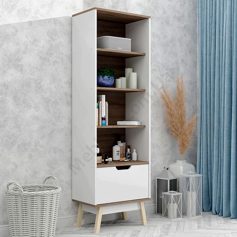 Сталаж на ніжках з відкритими полицями та шухлядою.