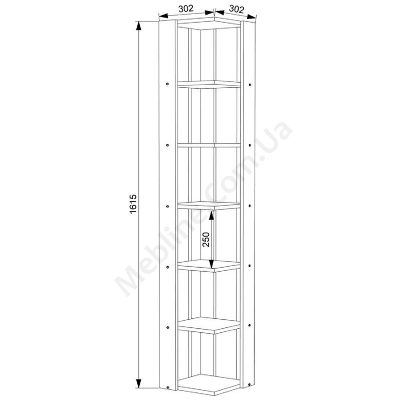Кутова етажерка з відкритими полицями.