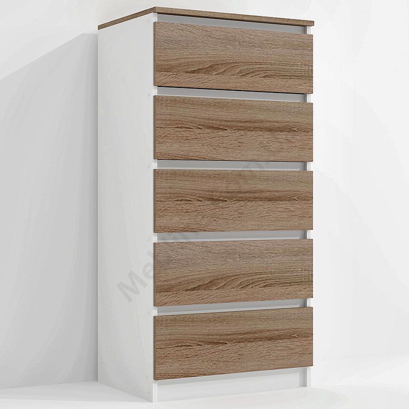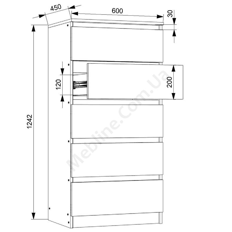 Виконаний з ламінованої ДСП Swiss Krono, завтовшки 16 мм.ДСП має високу щільність.Екологічна безпека класу Е-1.Кромка — протиударна ПВХ, завтовшки 0, 5 мм.Фурнітура — DC та Linken.П’ять висувних шухляд.Шухляди на телескопічних напрямних, глибиною 400 мм.
