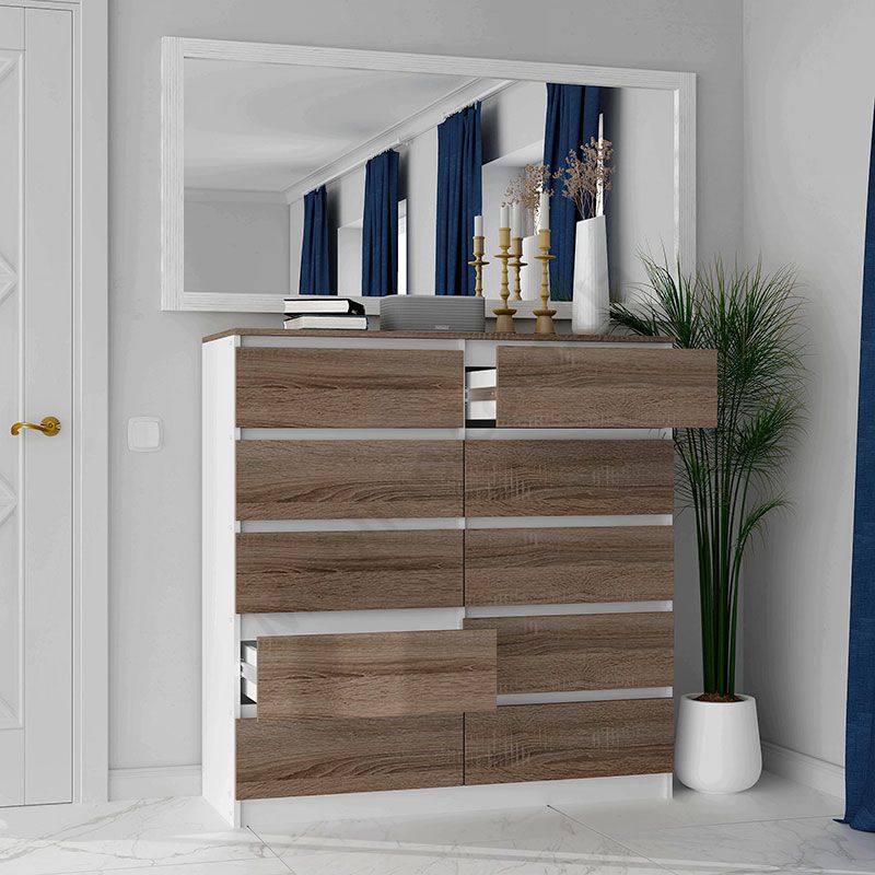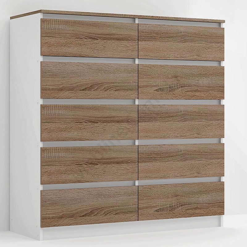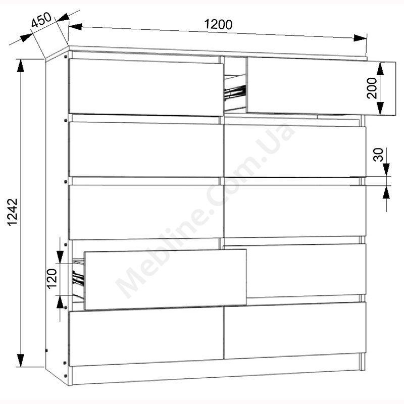 Виконаний з ламінованої ДСП Swiss Krono, завтовшки 16 мм.ДСП має високу щільність.Екологічна безпека класу Е-1.Кромка — протиударна ПВХ, завтовшки 0, 5 мм.Фурнітура — DC та Linken.Десять висувних шухляд.Шухляди на телескопічних напрямних, глибиною 400 мм.