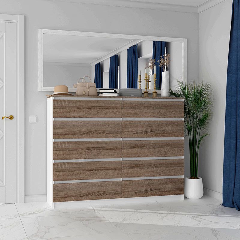 Виконаний з ламінованої ДСП Swiss Krono, завтовшки 16 мм.ДСП має високу щільність.Екологічна безпека класу Е-1.Кромка — протиударна ПВХ, завтовшки 0, 5 мм.Фурнітура — DC та Linken.Десять висувних шухляд.Шухляди на телескопічних напрямних, глибиною 400 мм.