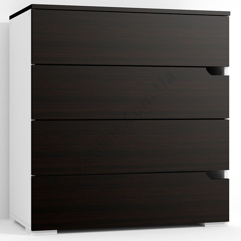 Виконаний з ламінованої ДСП Swiss Krono, завтовшки 16 мм.ДСП має високу щільність.Екологічна безпека класу Е-1.Кромка — протиударна ПВХ, завтовшки 0, 5 мм.Фурнітура — DC та Linken.Чотири висувні шухляди.Шухляди на телескопічних напрямних, глибиною 400 мм.Замість ручок вирізи у фасадах.