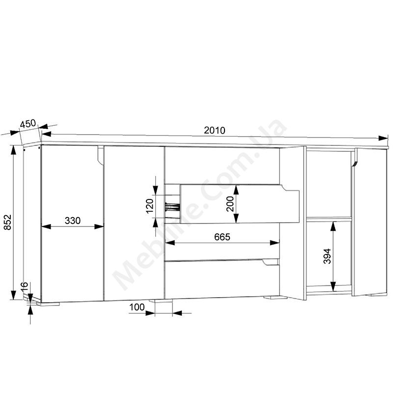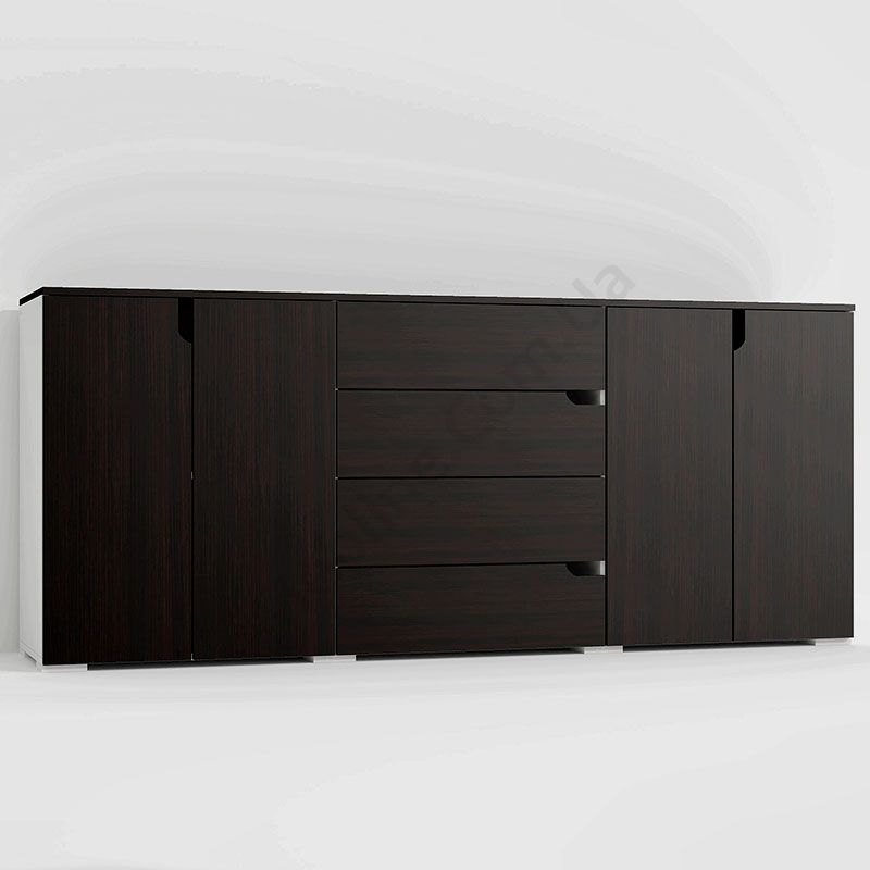 Виконаний з ламінованої ДСП Swiss Krono, завтовшки 16 мм.ДСП має високу щільність.Екологічна безпека класу Е-1.Кромка — протиударна ПВХ, завтовшки 0, 5 мм.Фурнітура — DC та Linken.Чотири висувні шухляди.Шухляди на телескопічних напрямних, глибиною 400 мм.За верцятами по одній полиці.Замість ручок вирізи у фасадах.