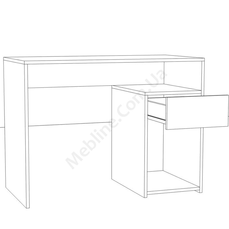 Можливе виконання у дзеркальному відображенні.Матеріал — ламінована ДСП SwissKrono, завтовшки 16 мм.Екологічна безпека класу Е-1.ДСП має високу щільність.Протиударна кромка ПВХ, завтовшки 0,5 мм.Тумба з відкритими полицями та висувною шухлядою.Фурнітура — DC та Linken.