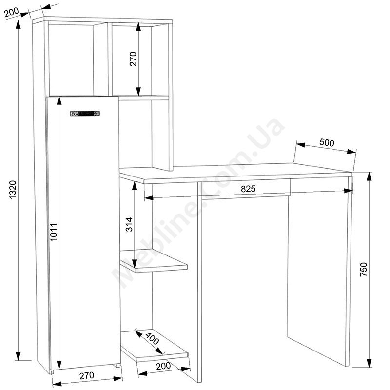 Комп’ютерний стіл зі стелажем та дверцятами.