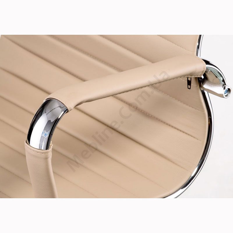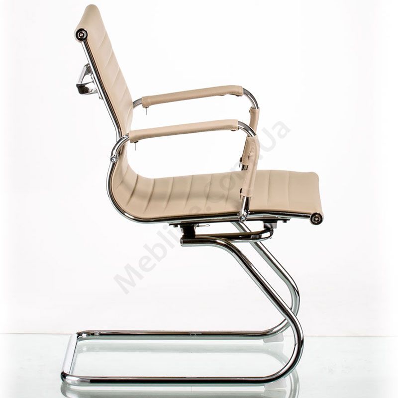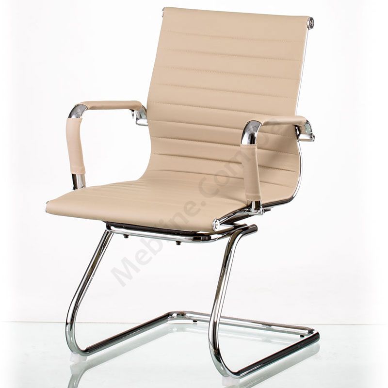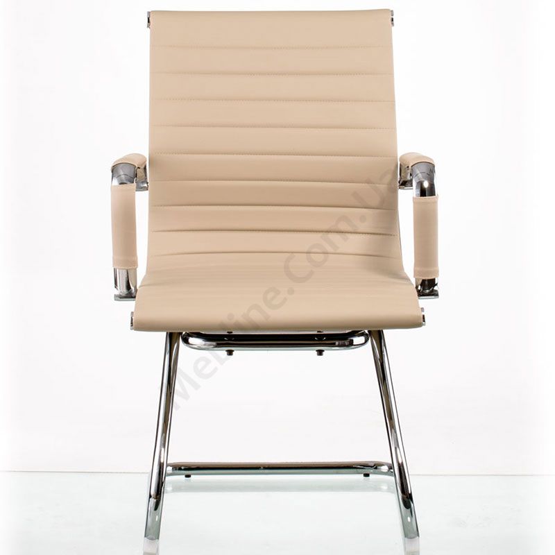 Тонке бежеве крісло для конференц-зали з м’якими накладками на підлокітниках.