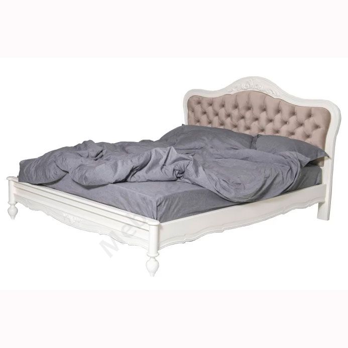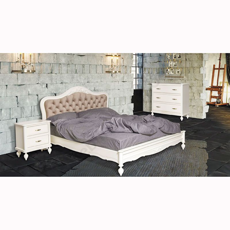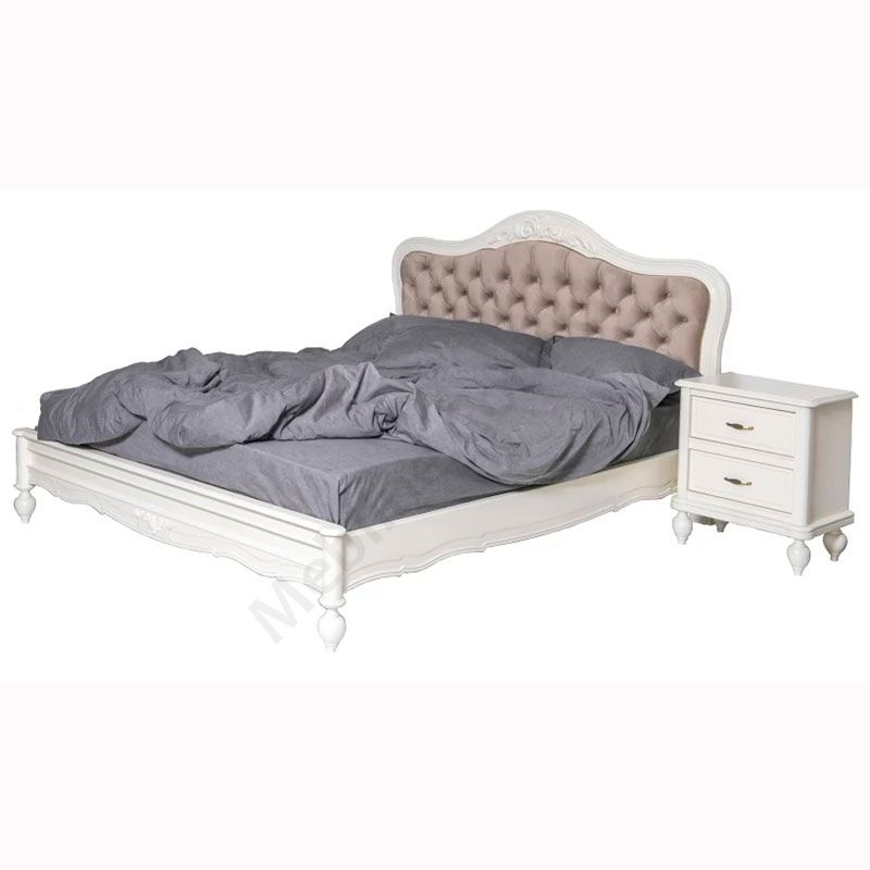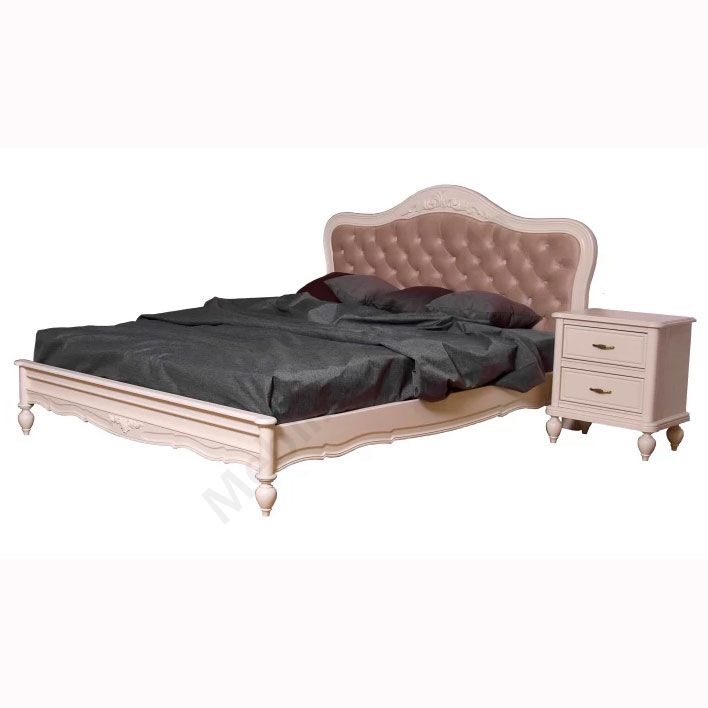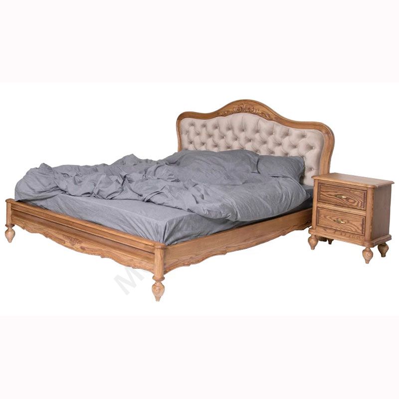 Двоспальне дерев’яне ліжко з м’якою оббивкою узголів’я.