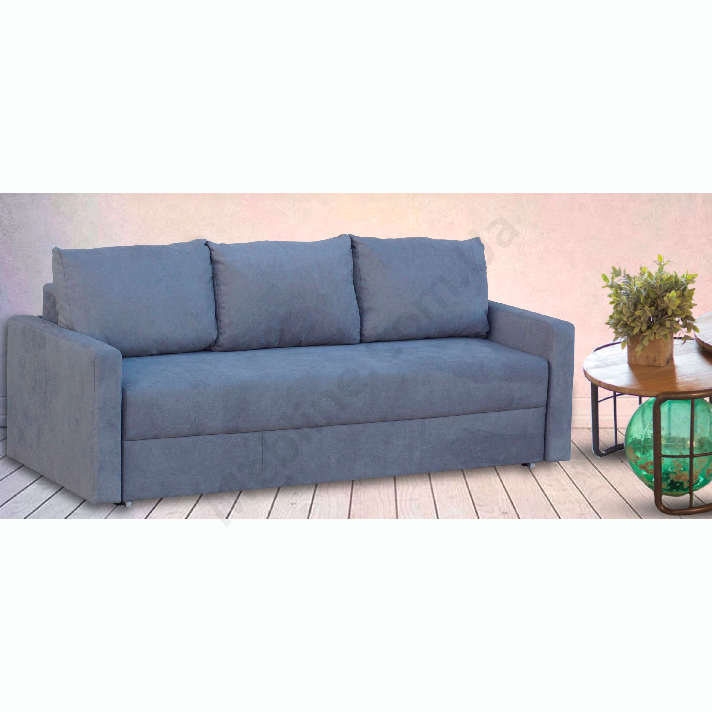 Прямий диван з підлокітниками та подушками.
