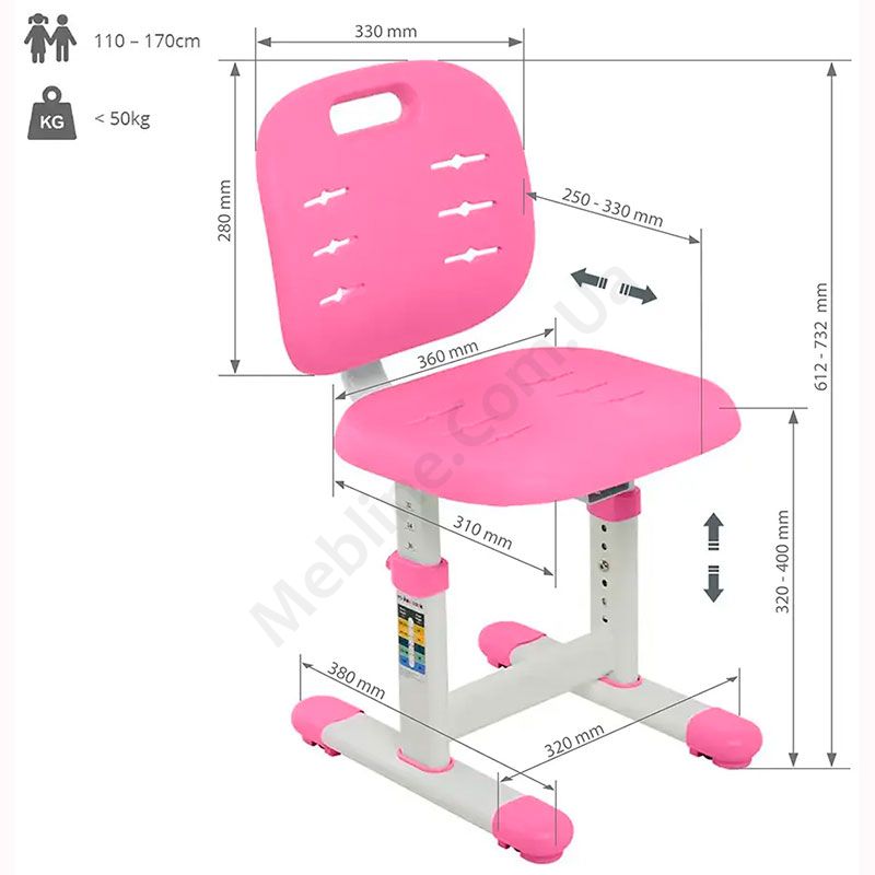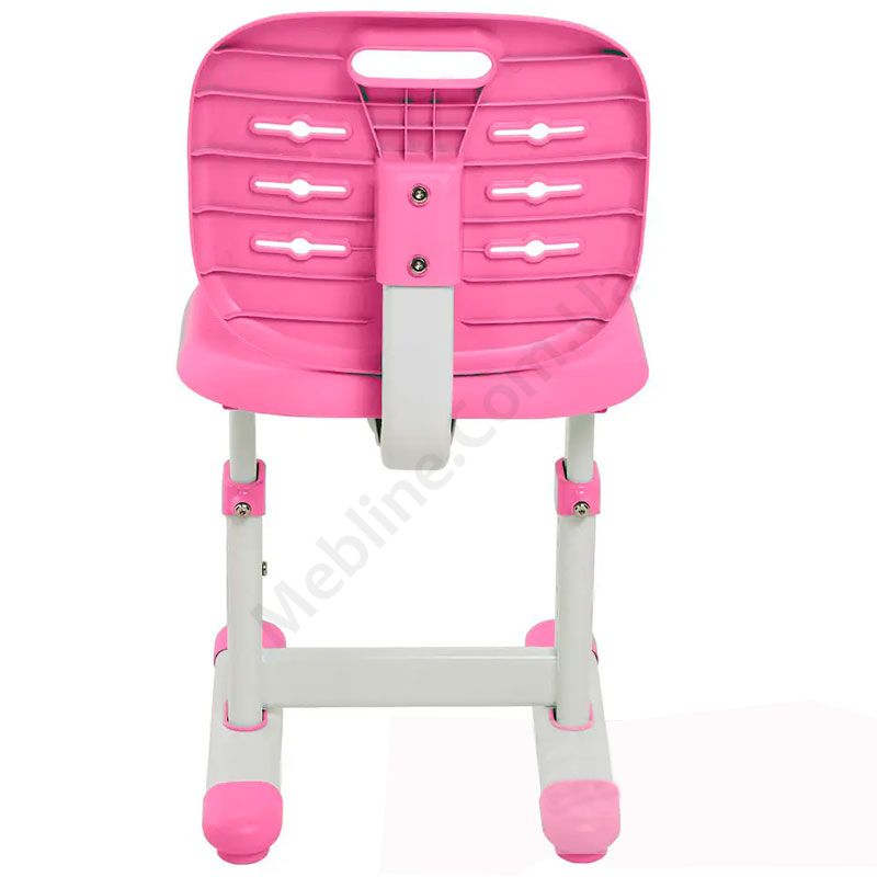Дитячий рожевий стільчик, що регулюється за висотою.