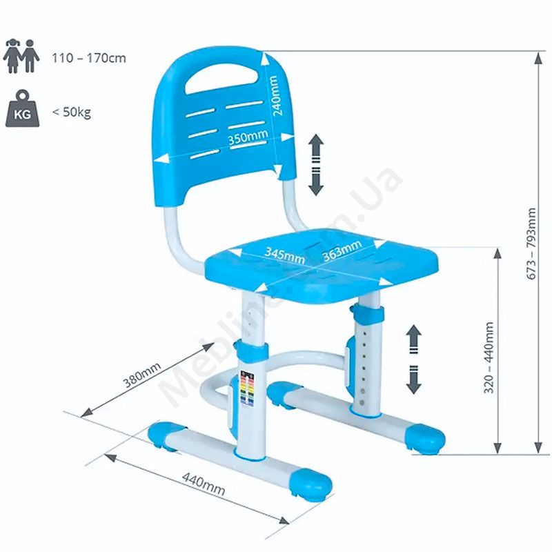 Дитячий блакитний стільчик, що регулюється за висотою.