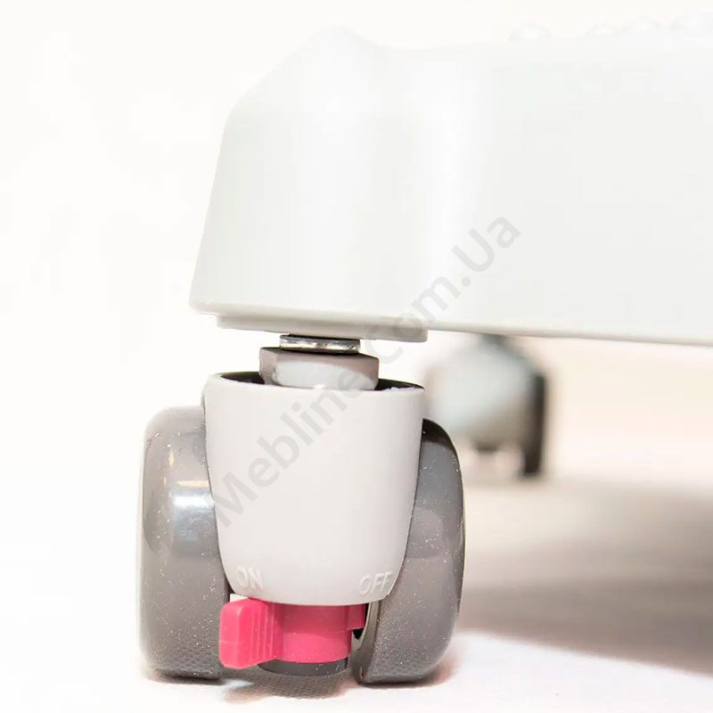 - Коліщатка мають вбудовані стопери з положенням «on» та «off», коли дитина сидить на стільці.