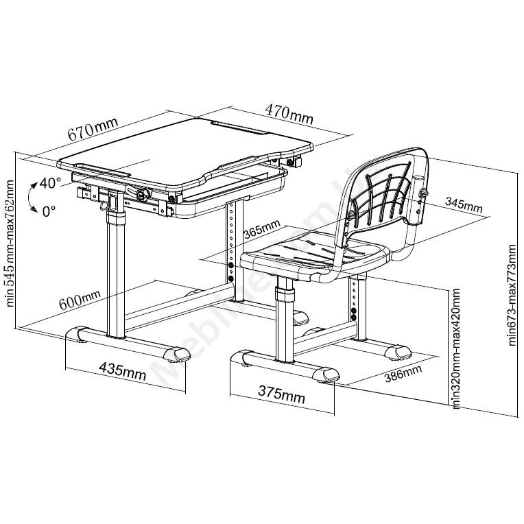 - Регулювання кута нахилу стільниці — роликовий фіксатор.