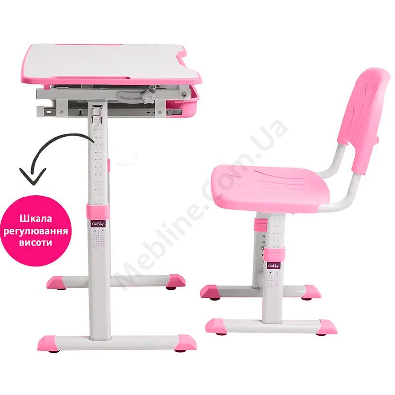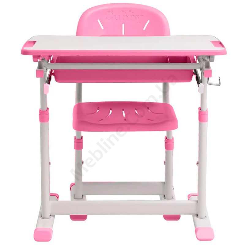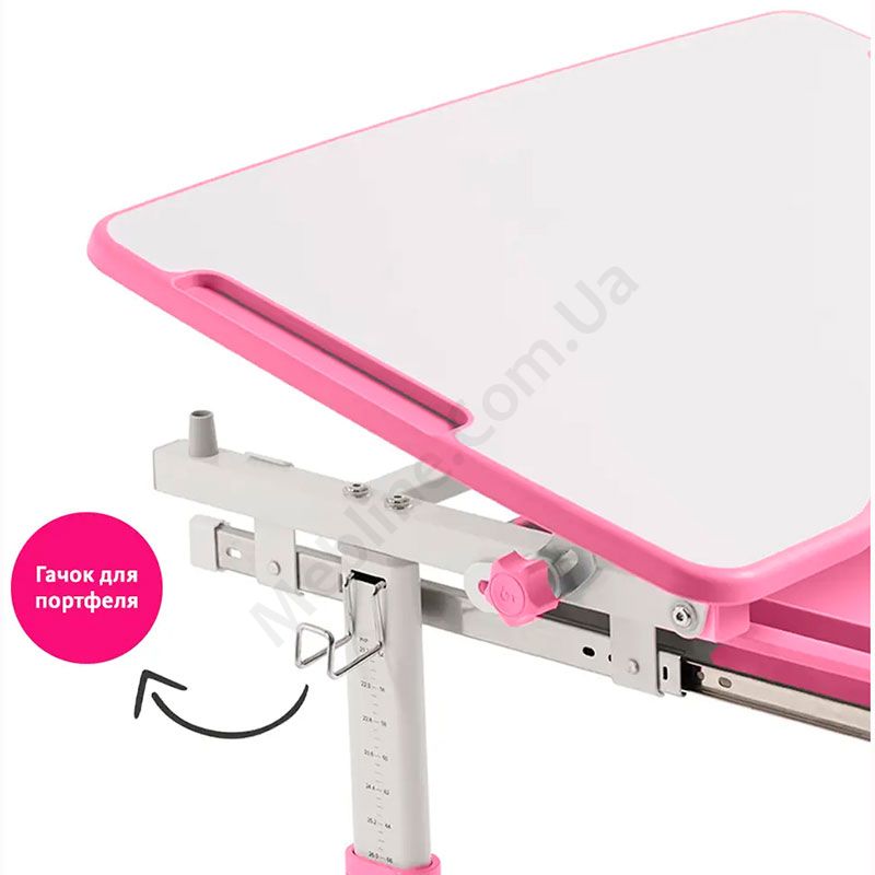 Зростаюча парта зі стільчиком білого з рожевим кольору.