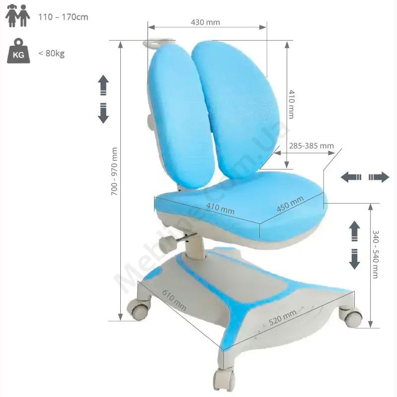 Ортопедичне крісло для школяра блакитного кольору з регулюванням висоти та глибини.