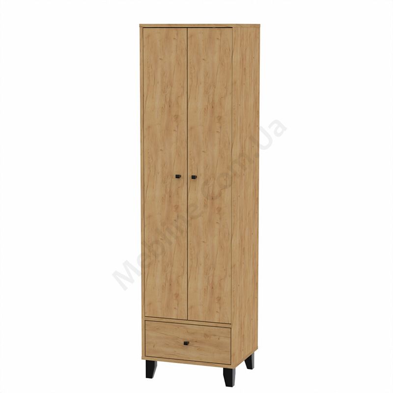 Дводверна шафа зі штангою для одягу та висувною шухлядою.