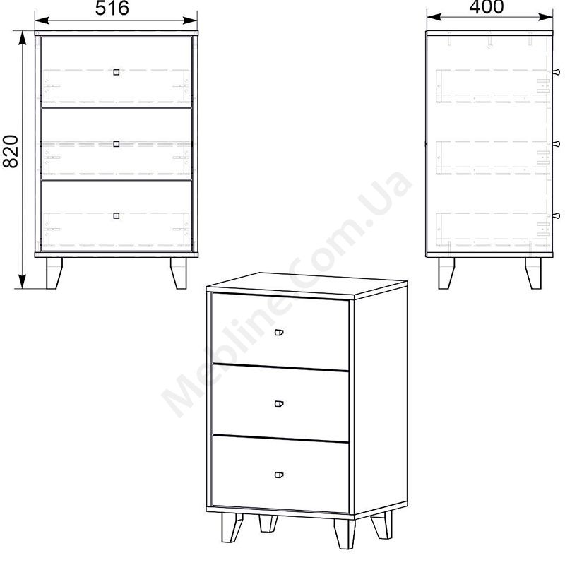 - Три висувні шухляди.