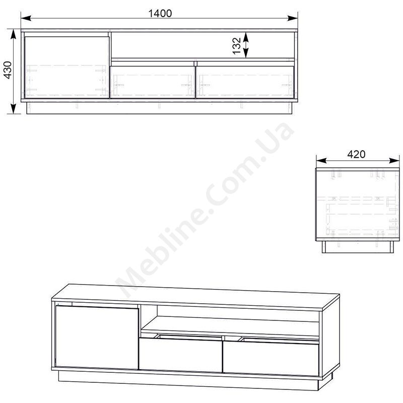 Тумба під телевізор з висувними шухлядами.