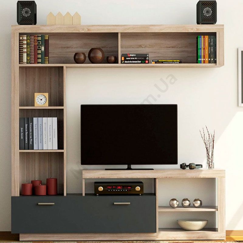 Стінка зі стелажем, тумбою під телевізор та полицею.