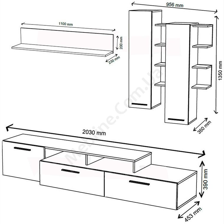 Стінка з пеналами, тумбою під телевізор та полицею.