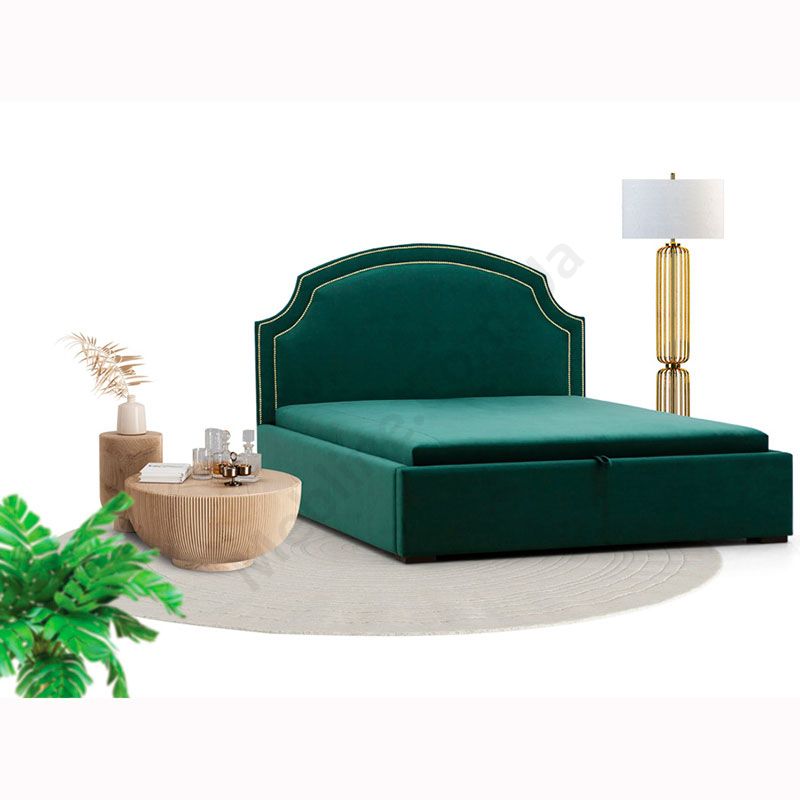 Під’ємне м’яке ліжко з фігурним узголів’ям та коробом.