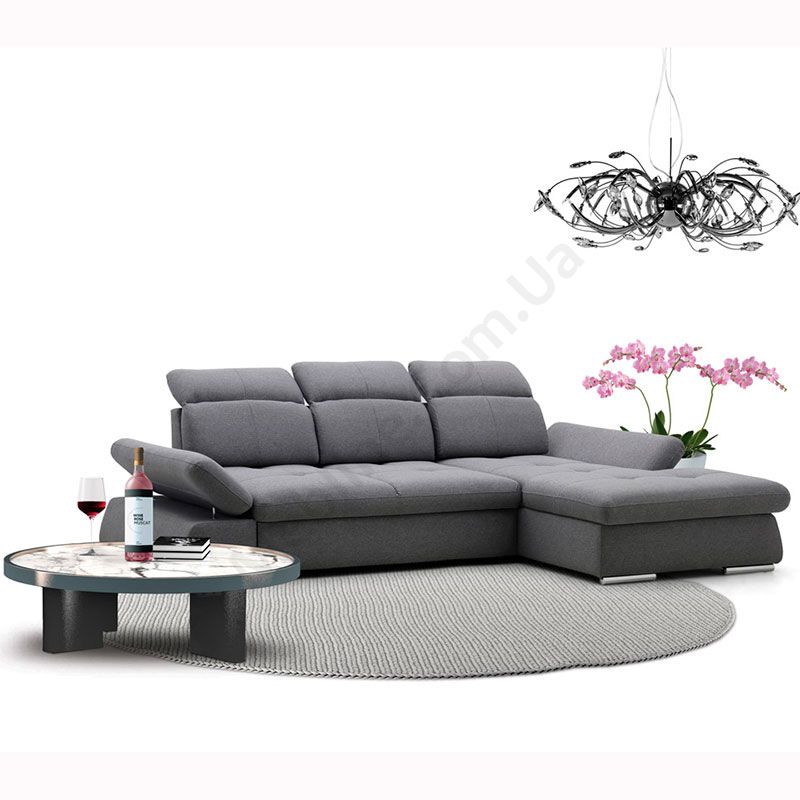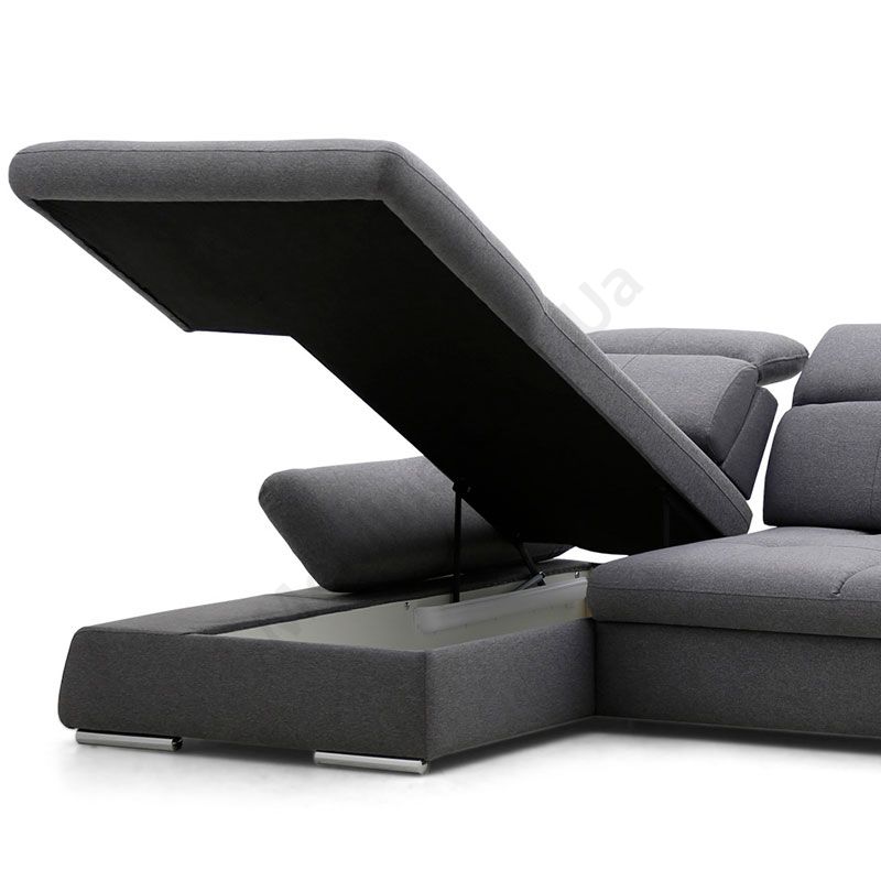 Кутовий розкладний диван-трансформер з підлокітниками та коробом.