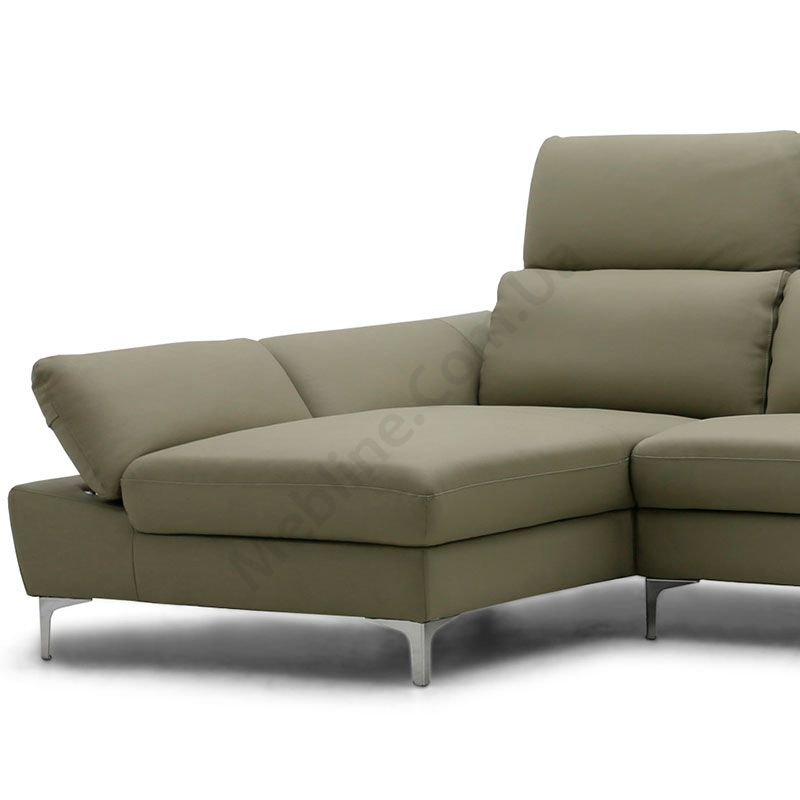 Кутовий нерозкладний диван з регульованими підлокітниками та підголівниками.