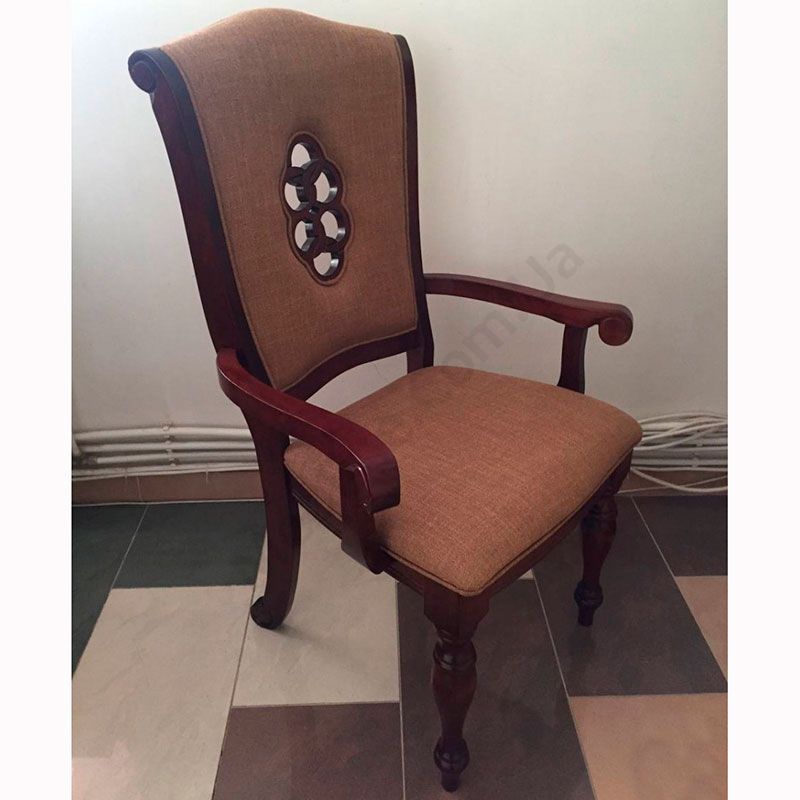 Стілець з підлокітниками в класичному стилі з м’якою оббивкою.