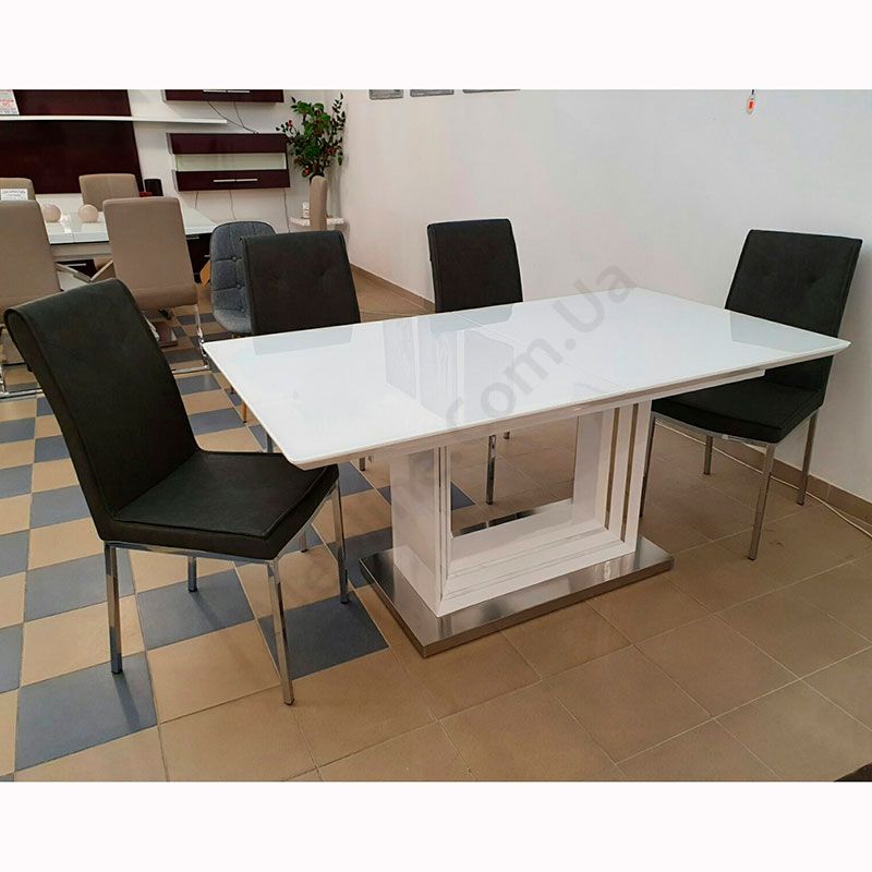 Обідній стілець на металевому каркасі з м’якою оббивкою.