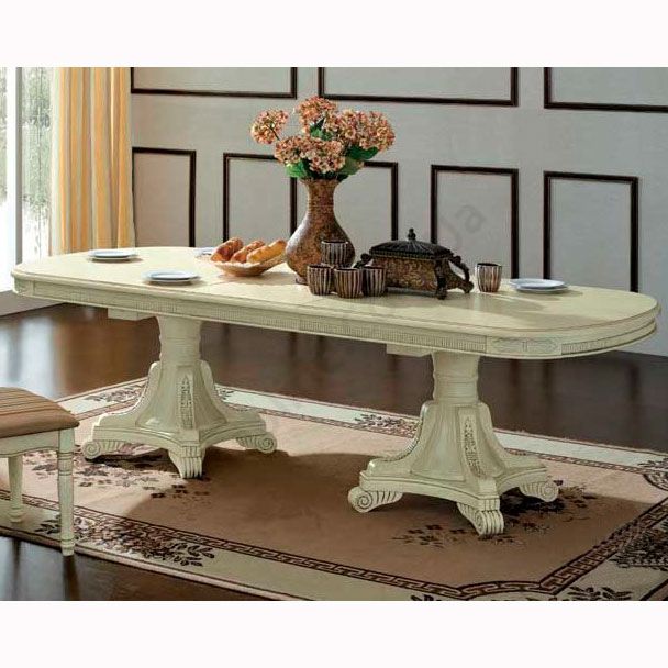 Овальний розкладний стіл з натурального дерева.