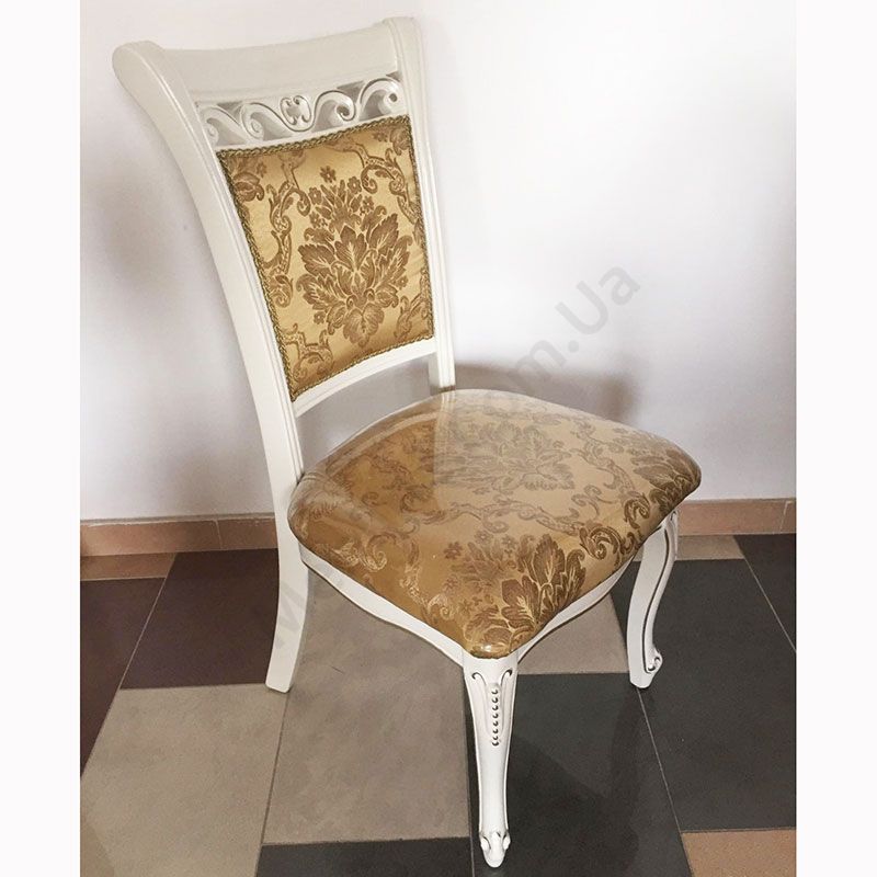 Обідній стілець у класичному стилі на дерев’яному каркасі з м’якою оббивкою.