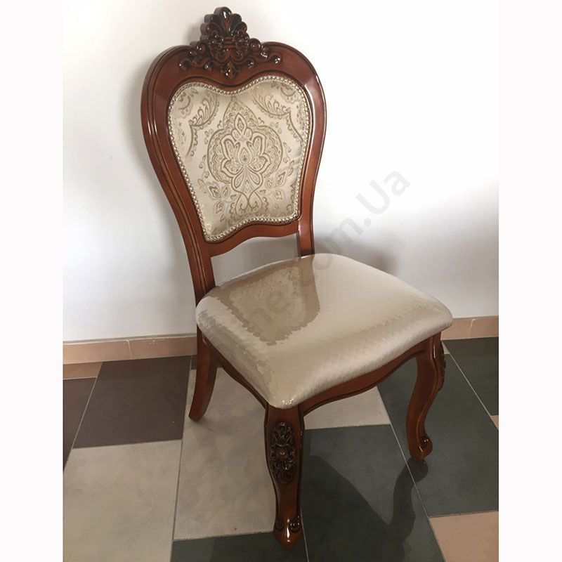 Обідній стілець у класичному стилі на дерев’яному каркасі з м’якою оббивкою.