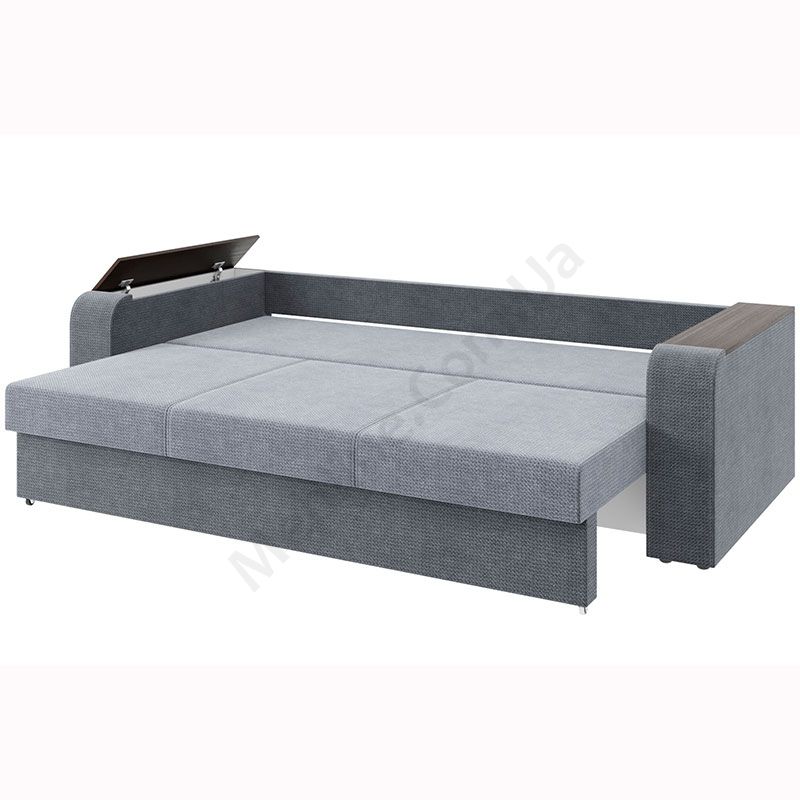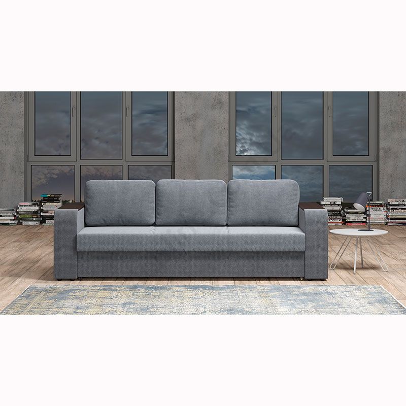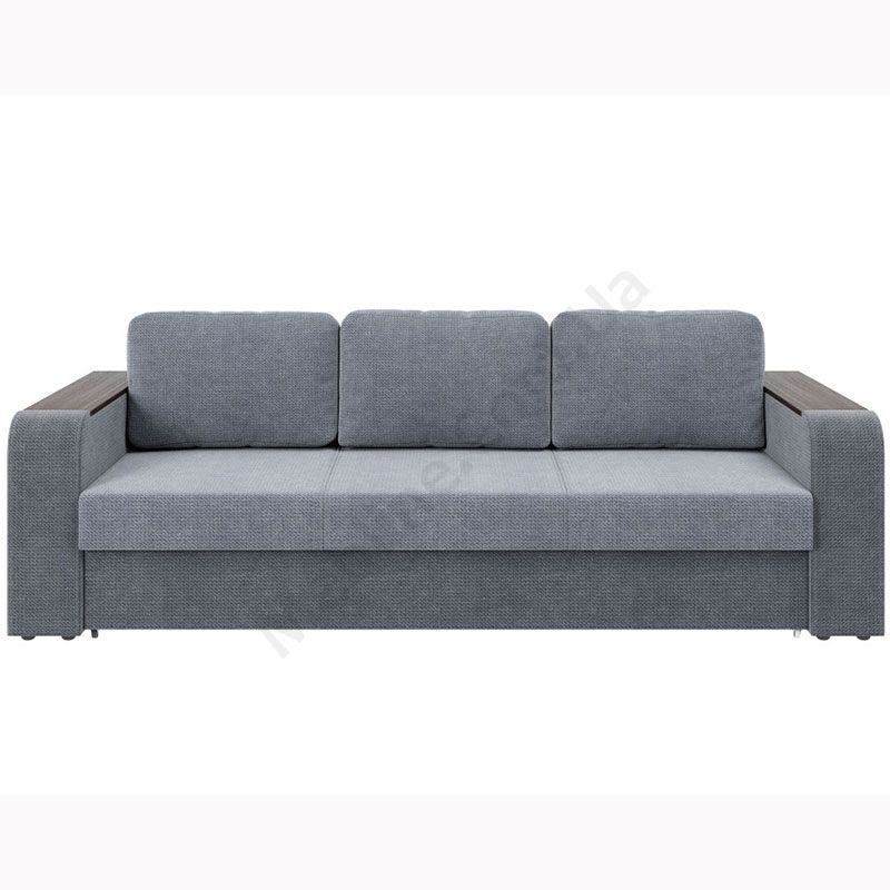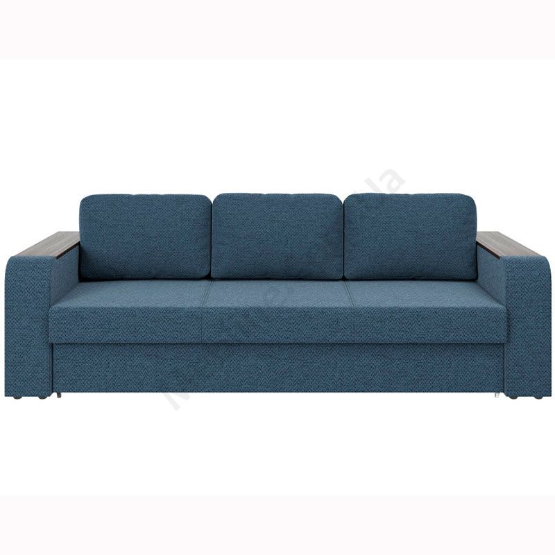 Розкладний диван з твердими широкими підлокітниками.
