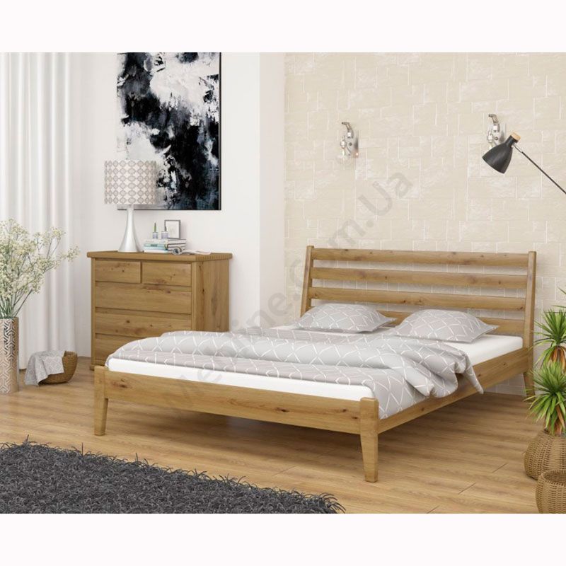 Дерев’яне ліжко на ніжках з узголів’ям.