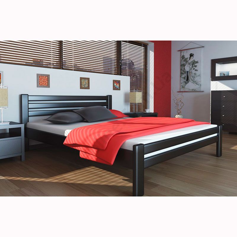Дерев’яне ліжко на ніжках з узголів’ям.