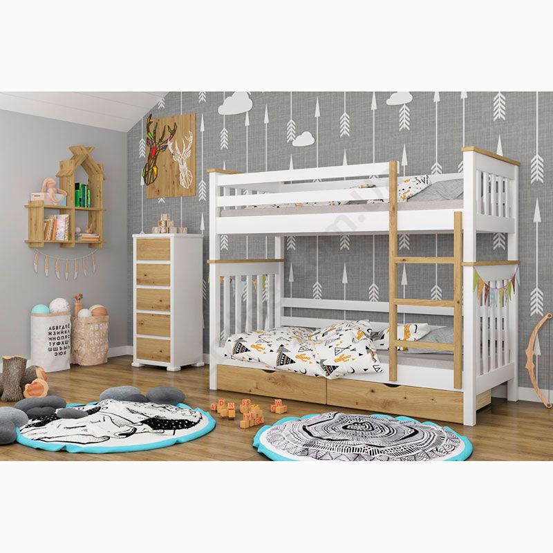 Додатково можна укомплектувати шухлядами для зберігання та захисним бортом нихнього яруса.
