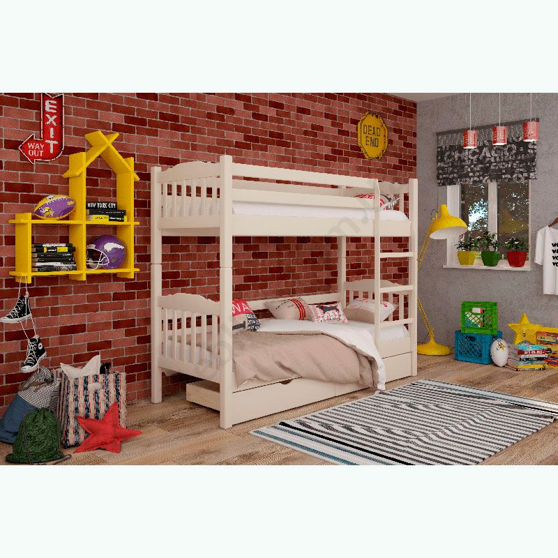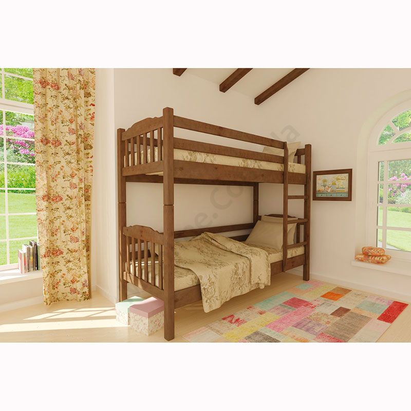 Дерев’яне двох’ярусне ліжко на ніжках з бортиками.
