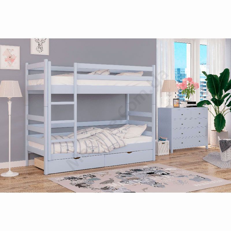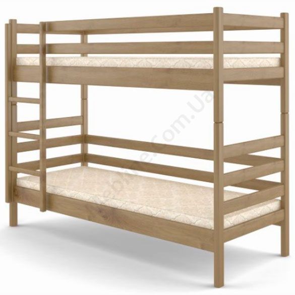 Дерев’яне двох’ярусне ліжко на ніжках з бортиками.