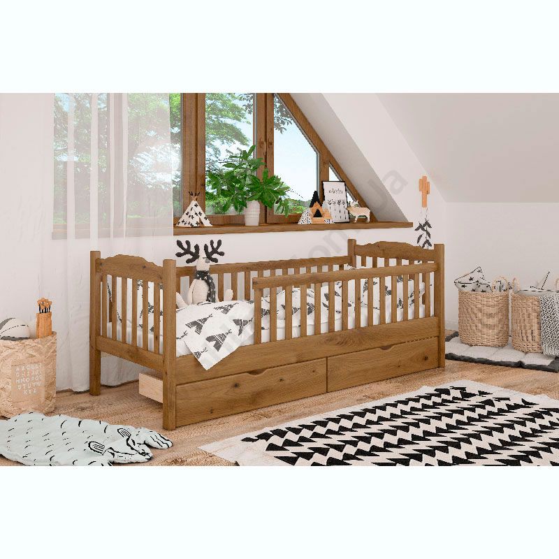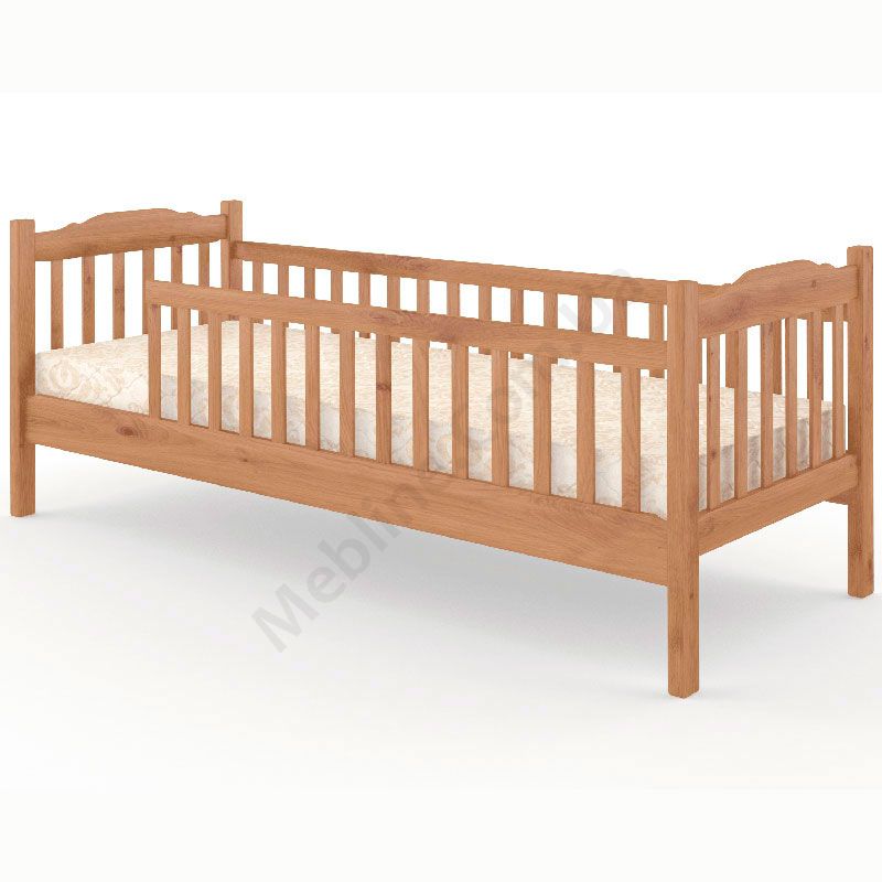 Дерев’яне дитяче ліжко на ніжках з бортиками.
