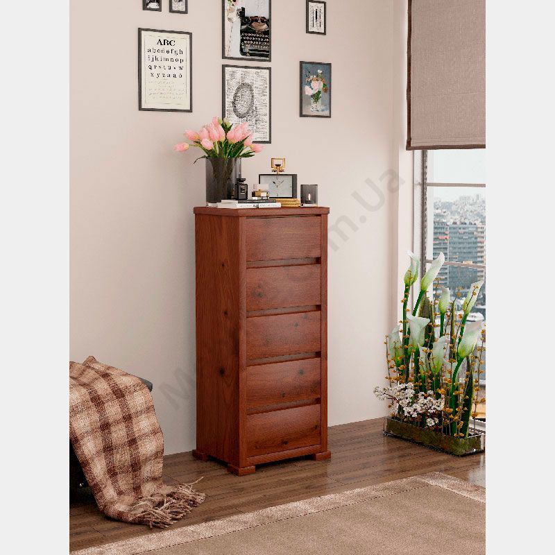 Дерев’яний комод на ніжках з висувними шухлядами.