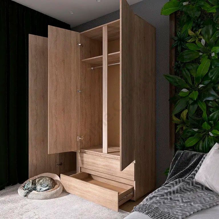 - За двома дверцятами штанга для одягу та верхня поличка.