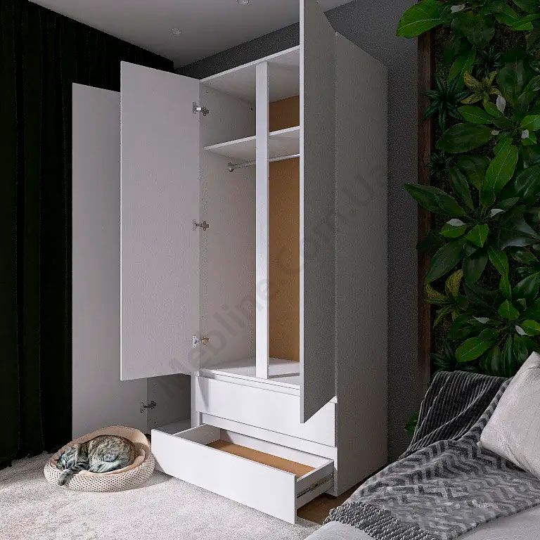 - За двома дверцятами штанга для одягу та верхня поличка.