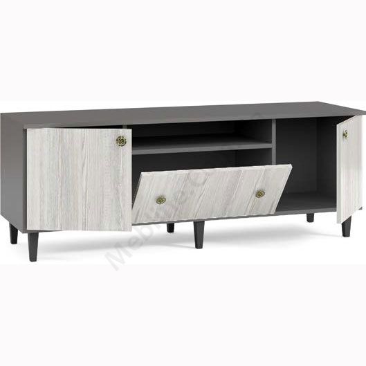 Тумба під телевізор з дверцятами та відкритою секцією.