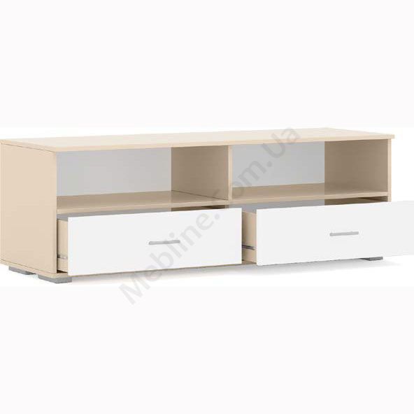 Тумба під телевізор з шухлядами та відкритими поличками.