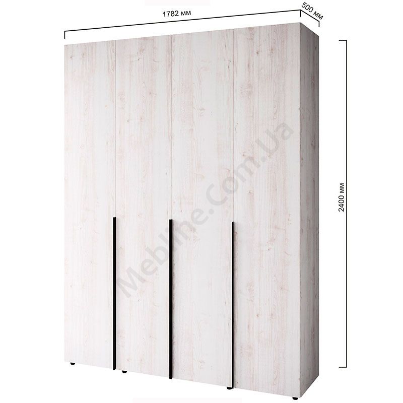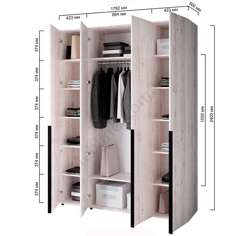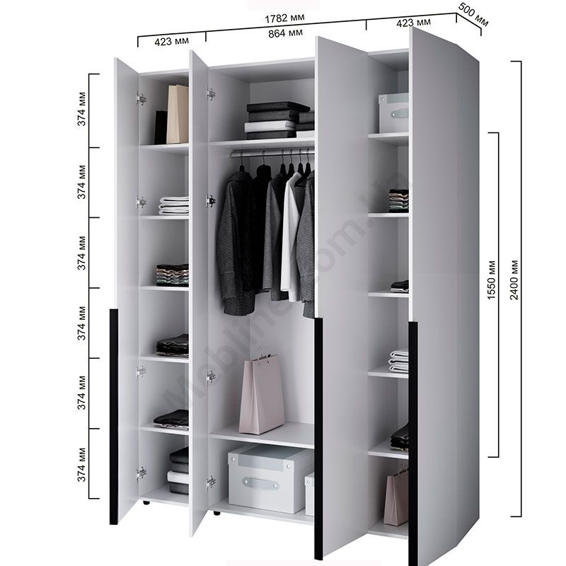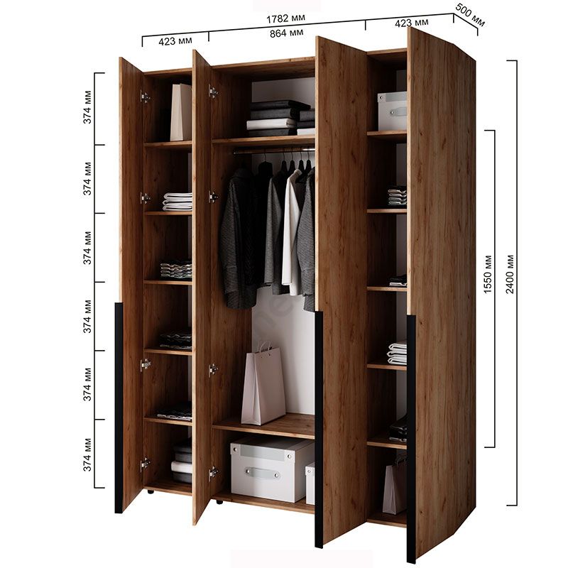 Чотиридверна шафа зі штангою та полицями.