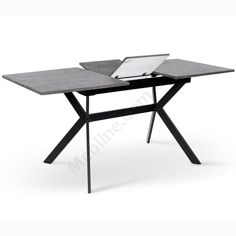 Обідній стіл із розкладною стільницею на металевих ніжках.