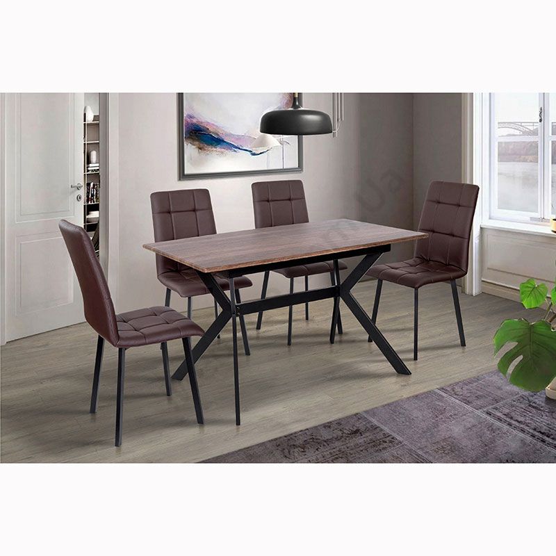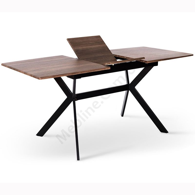 Обідній стіл із розкладною стільницею на металевих ніжках.