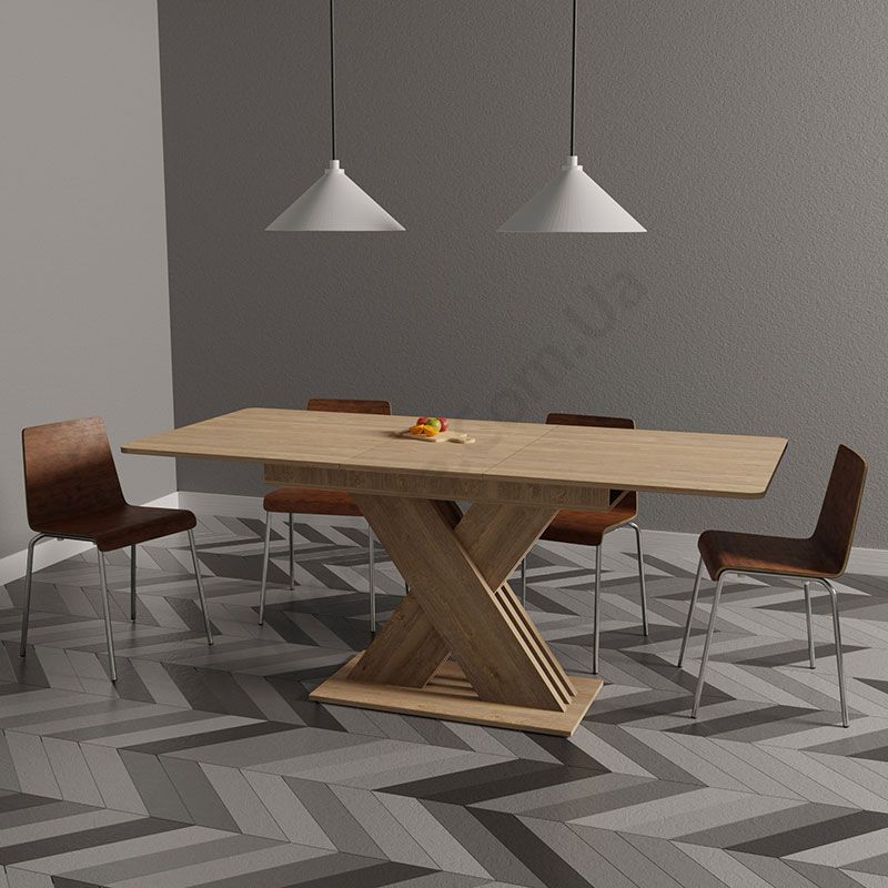 Розкладний обідній стіл на стійкій основі.