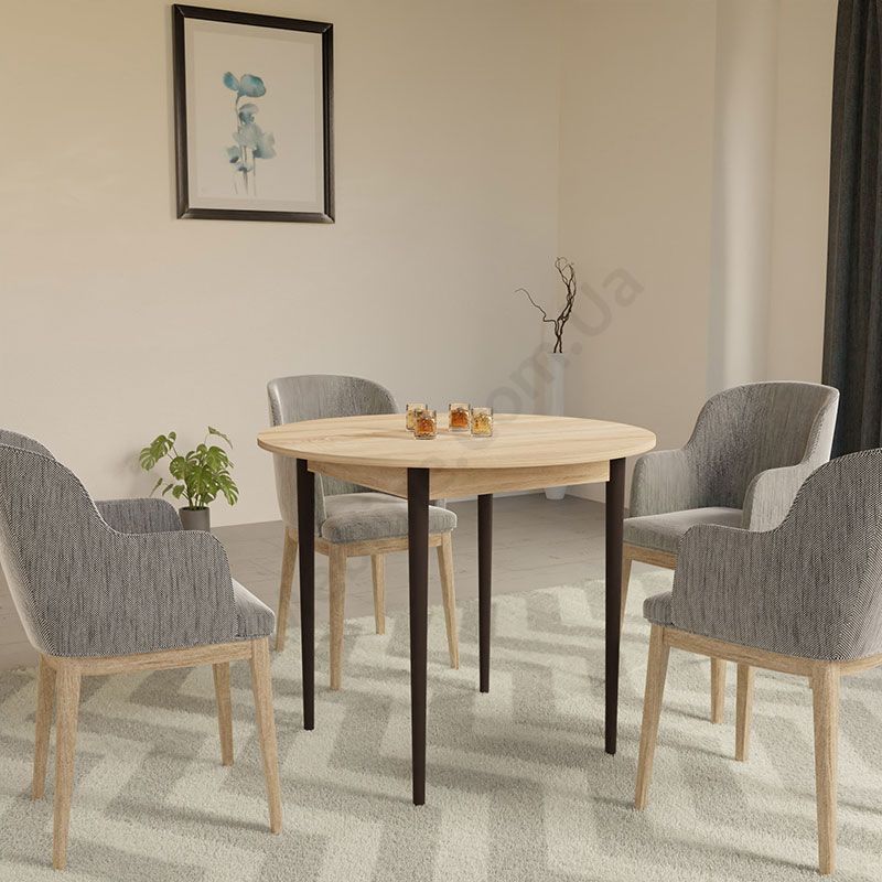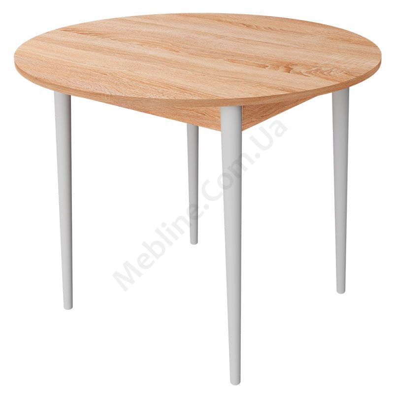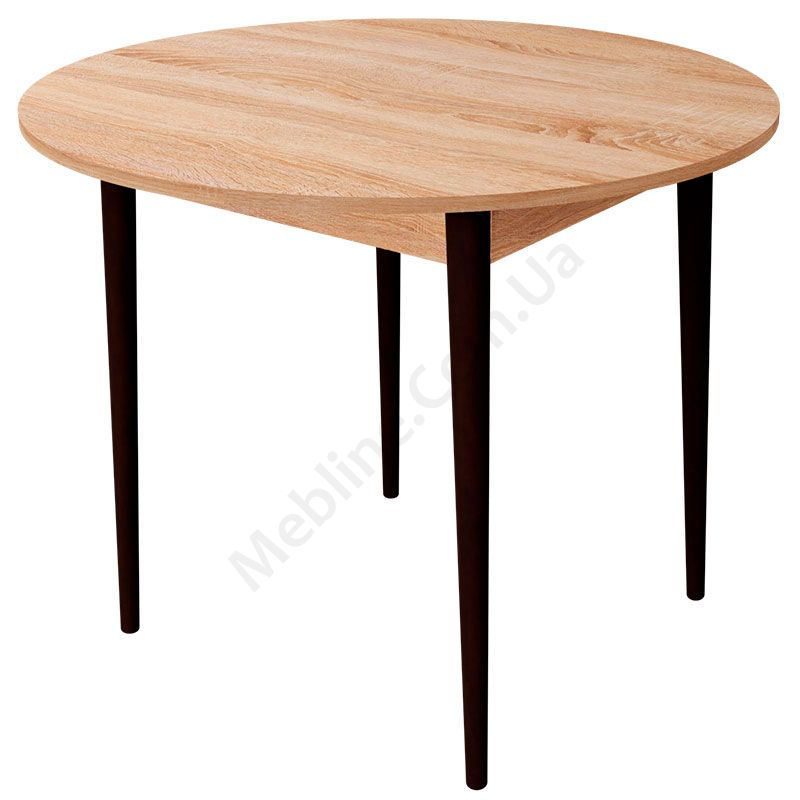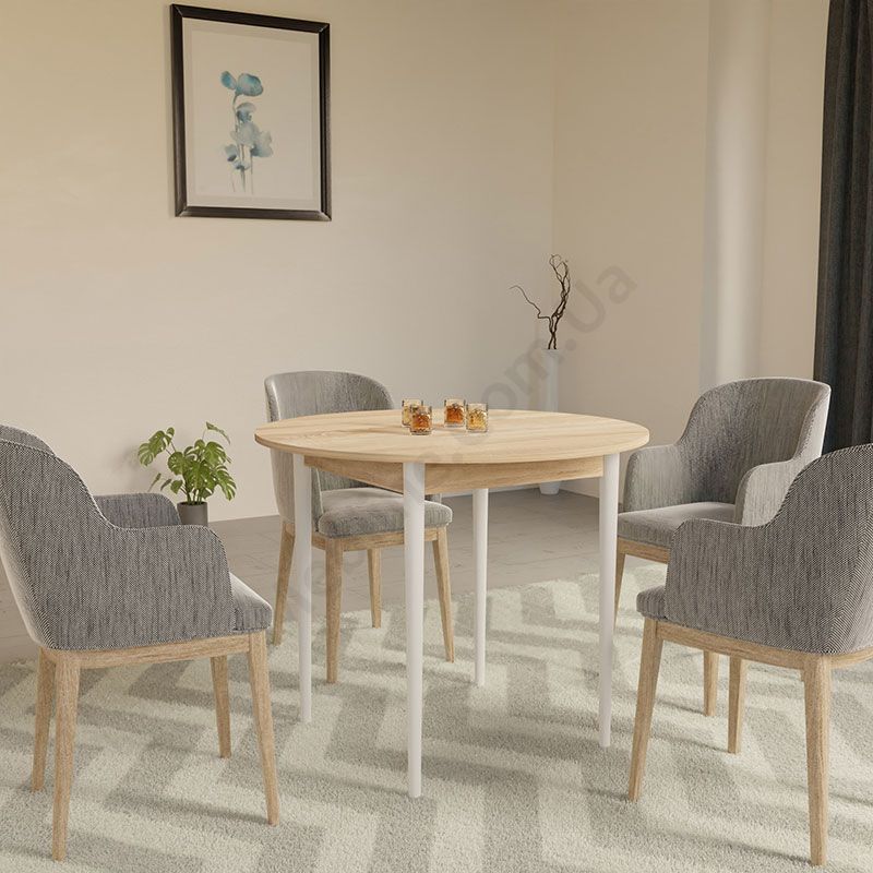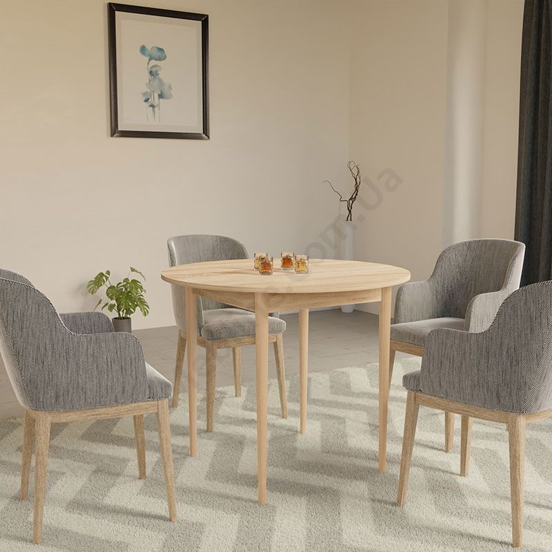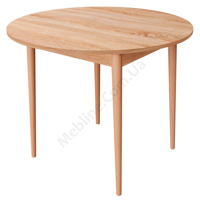 Круглий нерозкладний обідній стіл на чотирьох ніжках.